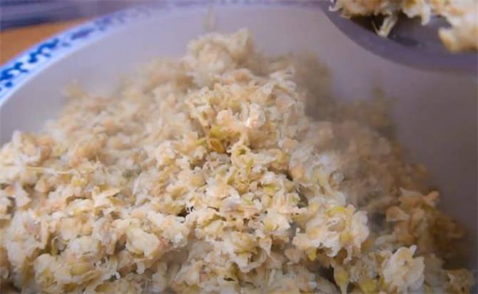 2.加三勺盐调味,再来一些面粉,面粉我一共加了一碗半,像这样干干的上面裹上一层面粉就行了。
